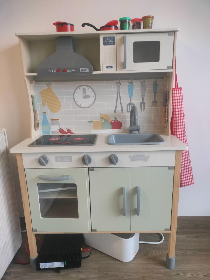 Sprzedam kuchnie drewniana, sporadycznie używana, efekty świetle , dźwięki , zakupiona w 2024 , tablica boczna nie używana ani razu + akcesoria : garnki , patelnie , łyżki itd.